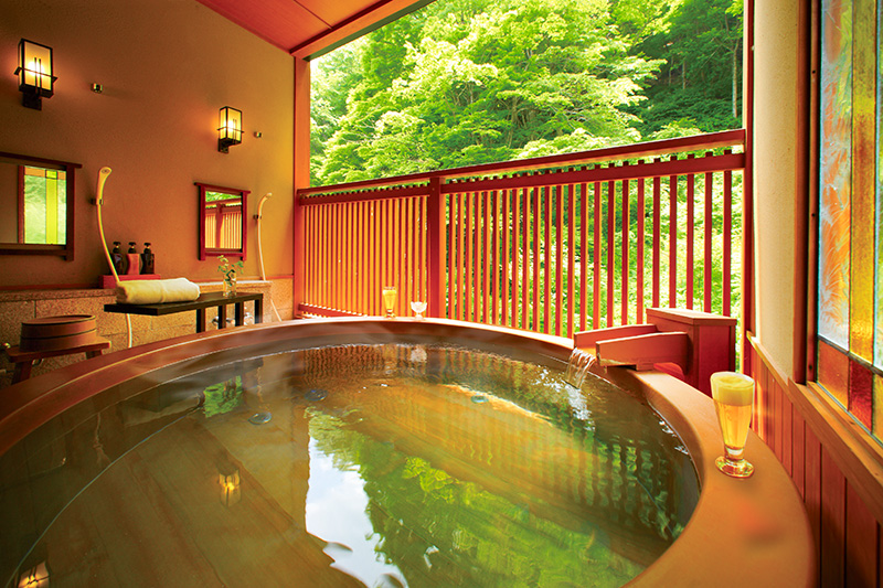 和創匠 松葉 啓氏プロデュースの別邸には、伝統美とモダニズムが調和した、擬洋室と露天風呂付特別室をご用意しています。落ち着いた和の空間に、ヨーロッパより直輸入した調度品を配し和モダンにしつらえました。別邸に入られた瞬間から、本邸とは違った趣きを感じて頂けることでしょう。お部屋ごとに異なるスタイルを愉しみながら、上質なやすらぎの時間をお過ごしくださいませ。